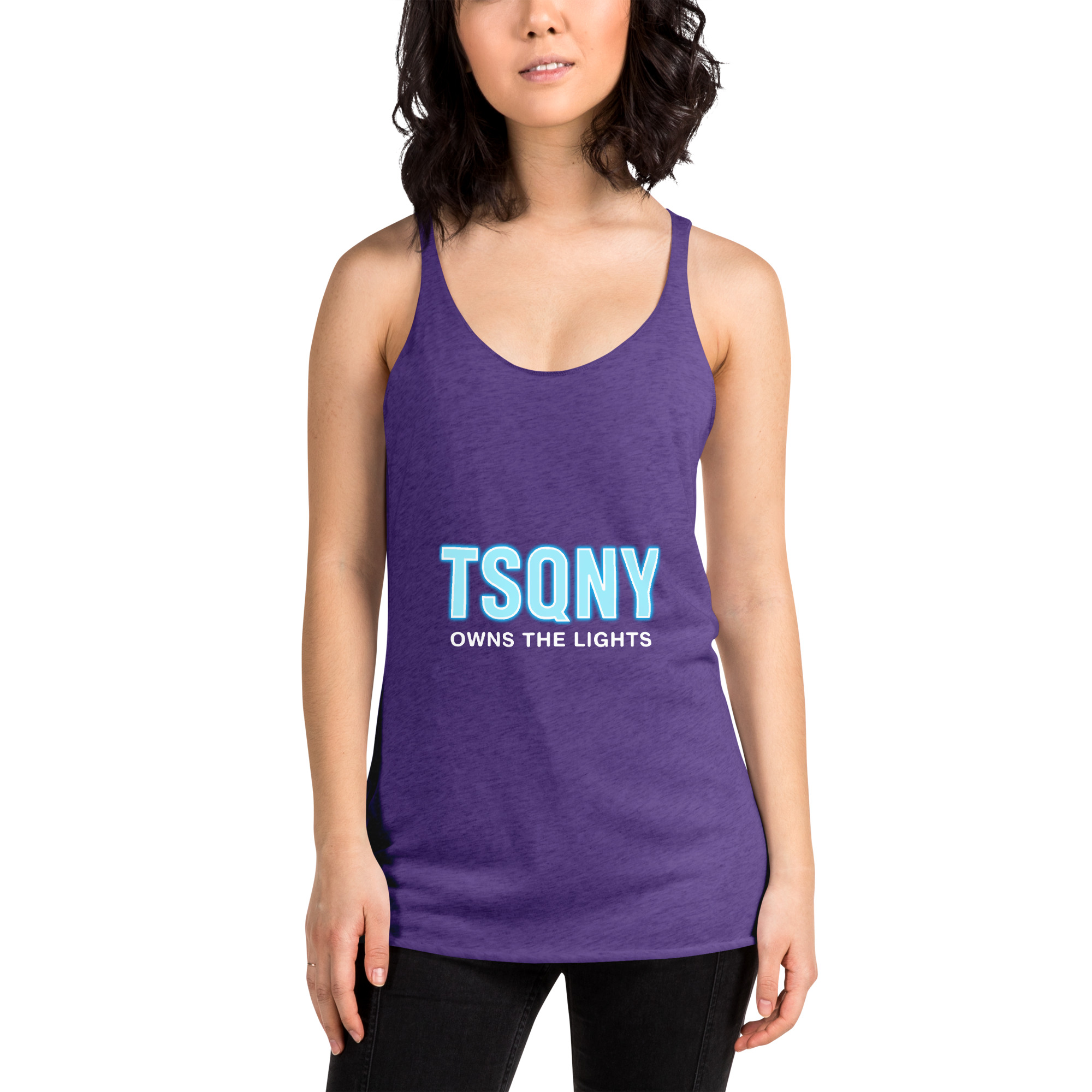 This racerback tank is soft, lightweight, and form-fitting with a flattering cut and raw edge seams for an edgy touch.